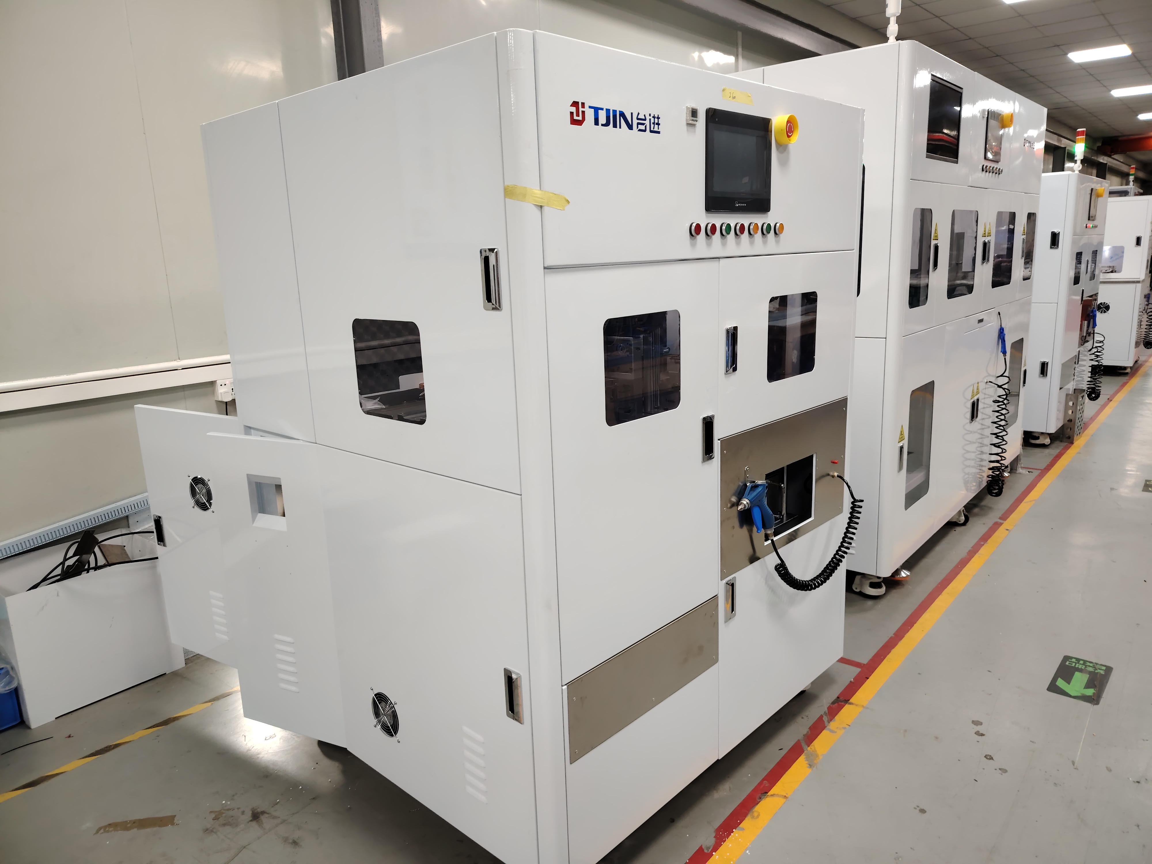 安全保護系統:設備裝有漏電保護裝置、急停按鈕裝置及所有主要護門裝有SENSOR保護裝置,護門打開后系統應作一定的反應,以保護人身安全